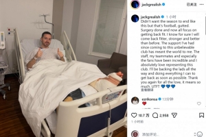 體育資訊2月10日訊 格拉利什更新社媒動態,確認成功完成手術。