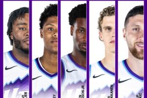 此役,爵士擺出了三塔陣容,讓馬爾卡寧(2米16)、努爾基奇(2米11)和新援小賈倫·杰克遜(2米08,JJJ)搭檔先發,另外兩人分別是以賽亞·科利爾和埃斯·貝利。