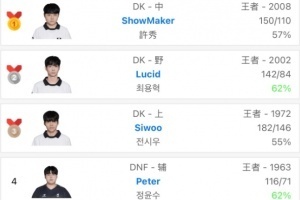 韓服排行榜更新:DK上中野包攬前三 Peter來到第四 Peyz來到第五啦!