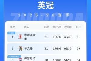 目前米德爾斯堡迎來六連勝,31輪18勝7平6負積61分,以2分優勢領跑英冠。蘭帕德執教的考文垂近3輪2負1平,31輪積59分第二。