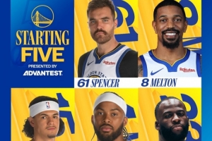 賽前勇士官方更新了本場球隊(duì)首發(fā):斯潘塞、梅爾頓、桑托斯、穆迪、追夢。