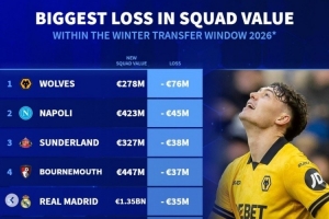 體育資訊2月10日訊 各大聯賽冬季轉會窗基本都已關閉,《轉會市場》也統計了經歷這個冬窗之后的球隊身價下跌最多情況,狼隊居首。