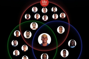數(shù)據(jù)統(tǒng)計顯示,能夠滿足“進球15+、助攻10+、過人75+”其中任何一項的球員都不在少數(shù),但同時滿足兩項的已經(jīng)屈指可數(shù):