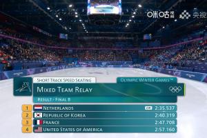 體育資訊02月10日訊 米蘭冬奧會短道速滑男女混合團體接力B組決賽,荷蘭隊打破奧運會紀錄,獲得第五名。
