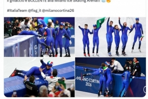 意大利短道速滑隊奪得米蘭冬奧會混合接力賽冠軍,國米官方社媒轉發新聞,并寫道:“輝煌的藍金之光 ,祝賀意大利短道速滑隊在混合接力項目中勇奪桂冠,阿里安娜·豐塔納創造歷史,摘得個人第十二枚奧運獎牌!”