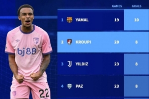 克魯皮(伯恩茅斯),20場(chǎng),8球