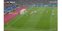 比賽第22分鐘,曼聯左側角球機會,盧克·肖禁區內的搶點攻門被萬-比薩卡在門線上用膝蓋完成解圍。
