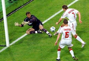 哦?巴黎俄羅斯門將薩福諾夫出擊送空門,烏克蘭后衛扎巴爾尼救險