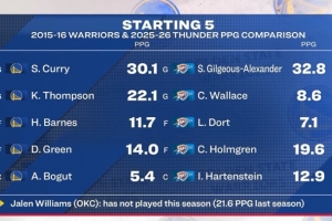 注:雷霆的杰倫·威廉姆斯賽季至今未出戰,上賽季他場均21.6分。