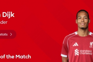 本場比賽范戴克打進全場唯一進球,賽后也當選英超官方球迷票選全場最佳球員。