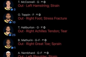 這場比賽堪稱超級殘陣,一共七名球員缺陣,分別是哈利伯頓、馬瑟林、托平、內姆哈德、麥康納、卡梅隆-瓊斯和麥克朗。