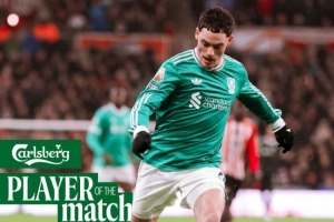 利物浦官方宣布,維爾茨當選本場比賽隊內最佳球員。