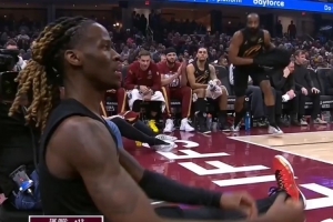 GIF——基翁·埃利斯倒地 哈登從替補席上沖上去拉起隊友