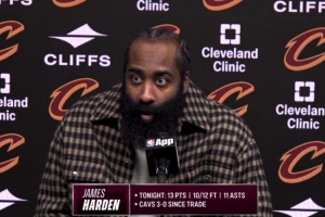 體育資訊2月12日訊 NBA常規賽,騎士138-113大勝奇才,賽后哈登接受采訪。