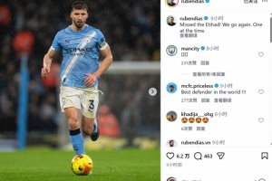 魯本·迪亞斯傷愈后首次在主場出戰(zhàn),他首發(fā)踢滿全場,賽后魯本·迪亞斯社媒寫道:“想念伊蒂哈德球場,我們?cè)俅纬霭l(fā),一場一場來。”