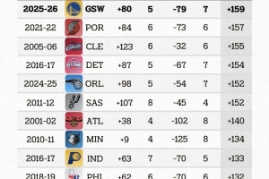 據(jù)統(tǒng)計,勇士本賽季至今12場比賽,主場凈勝對手80分,客場凈負(fù)79分,主客場凈勝分差值達(dá)到159,創(chuàng)下了本世紀(jì)以來所有球隊賽季前12場比賽的最懸殊紀(jì)錄。