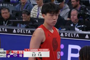 這球裁判吹科迪威犯規,爵士挑戰,挑戰成功!改成森薩博犯規,楊瀚森依舊獲得兩罰!并且兩罰全中。