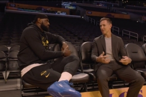 在比賽進行期間,轉播商Prime播出了本場解說嘉賓納什在賽前對詹姆斯的采訪片段。