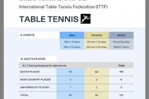 體育資訊2月13日訊 國際奧委會(huì)公布了2028年洛杉磯奧運(yùn)會(huì)乒乓球資格分配方案,參賽人數(shù)限制方面,各協(xié)會(huì)男、女單打最多各2名選手參賽。