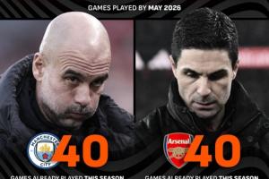 體育資訊02月13日訊 據統計,在本輪英超過后,阿森納和曼城分別迎來了各自球隊本賽季的第40場比賽,如今兩隊面臨著英超、歐冠、聯賽杯和足總杯四線作戰。