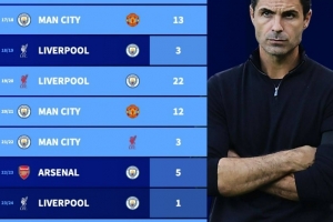 體育資訊2月13日訊 本賽季英超26輪戰(zhàn)罷,阿森納目前以4分優(yōu)勢領先曼城位居榜首,德轉(zhuǎn)也盤點了近10個賽季英超同期前兩名積分差距情況,具體如下: