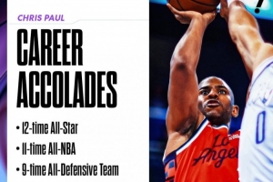 職業生涯21年,保羅可謂是榮譽滿身,他12次入選全明星,11次入選最佳陣容(4次一陣,5次二陣,2次三陣),9次入選最佳防守陣容(7次一防,2次二防),當選過最佳新秀、全明星MVP,五次拿到助攻王,六次搶斷王,入選NBA75大巨星。