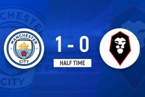 上半場傷停補時2分鐘,半場結(jié)束,曼城暫1-0索爾福德城。
