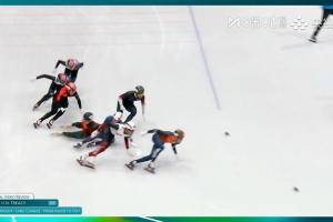 比賽中英國選手特雷西犯規(guī),撞倒劉少昂,隨后孫龍也受影響甩了出去,而且膝蓋還被冰刀劃傷,最終未能完賽,排名第八,劉少昂第七,英國選手被取消成績。