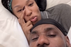 詹姆斯曬出他和妻子躺在床上的自拍合影,并評論道:“????????????????????情人節(jié)快樂!笑死我了??”