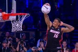 GIF-約翰遜摸腦袋+天鉤扣籃!致敬馬龍和J博士!