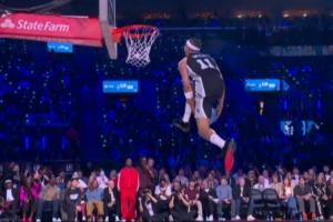 GIF-本屆扣籃大賽首個(gè)滿分!卡特·布萊恩特正面胯下?lián)Q手灌籃一次成功!
