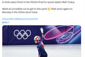英國奧運隊的官推賽后寫道:“速度滑冰選手尼爾·特雷西在1500米決賽中獲得第九名。能夠走到這一步,已經是相當了不起的成就了?? 尼爾將在周一的500米短道比賽中再次亮相。”