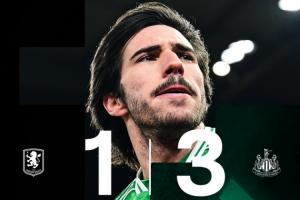體育資訊02月15日訊 足總杯比賽,紐卡3-1逆轉維拉,喜鵲中場托納利打進2粒進球。