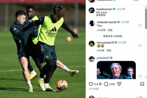 體育資訊2月15日訊 阿森納小將道曼今天更新Instagram,曬照慶祝回歸訓練。