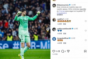 庫爾圖瓦社媒寫道:“在主場取得重要勝利,感謝你們的支持。西甲8連勝,讓我們繼續為冠軍而戰!”
