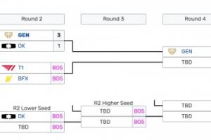 由于常規賽戰績中DK的3勝2負戰績不如另一組對決的T1和BFX,因此DK跌入敗者組第二輪,后續交手DNS與DRX勝者,而T1將在敗者組第三輪等到第兩輪的勝者。