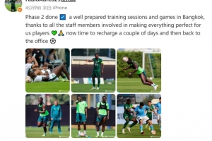 法比奧在個人社媒曬出多張圖片,同時配文寫道:第二階段完成,在曼谷的訓練和比賽安排得很好,感謝所有工作人員為我們球員營造了如此完美的體驗?,F在需要休息幾天充電,然后繼續工作。