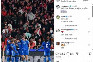 維尼修斯慶祝進球時疑似遭到種族歧視,皇馬中場卡馬文加社媒曬出球員們與維尼修斯的合照,配文:“中場休息,永遠與你同在,兄弟,維尼修斯。”