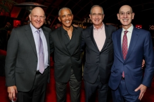 官方寫道:“NBA全明星賽在洛杉磯拉開帷幕,史蒂夫·鮑爾默和布萊恩·羅伯茨熱情迎接了NBA嘉賓和全明星球員。NBA總裁亞當·蕭華和特別嘉賓前總統奧巴馬也出席了活動,共同慶祝這一難忘的夜晚。”