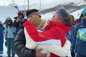 賽后蘇翊鳴沖向父母慶祝,媽媽一邊幫蘇翊鳴抹淚一邊說道:“我X你真厲害,兒子生日快樂!這是最好的生日禮物。”