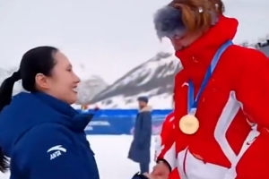 頒獎儀式上,國際奧委會委員張虹為他頒發(fā)了這枚金牌。張虹曾在2014年索契冬奧會女子速度滑冰1000米比賽中,為中國速度滑冰實現(xiàn)冬奧金牌零的突破。兩代冬奧傳奇同框,也見證著中國冰雪運動的傳承與突破。