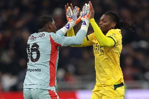 邁尼昂失誤導致米蘭丟球,而你在進球后給了邁尼昂一個擁抱