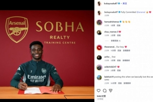 薩卡也通過社媒曬出自己的簽字照,并配文:“完全忠于阿森納????”。