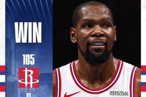 賽后火箭官方發布贏球海報,杜蘭特成為封面人物。