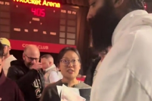 賽后,哈登給遠(yuǎn)道而來(lái)的上海球迷送上了簽名。