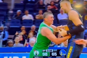 賽后采訪,完成勇士首秀的波爾津吉斯接受了記者采訪。談到自己和普理查德?lián)屒颍f道:“我不會(huì)輕易放棄那個(gè)球的。當(dāng)時(shí)我們落后很多,所以我的心情本來就不太好。但其實(shí)那只是和老隊(duì)友之間的一個(gè)有趣瞬間,只是開開玩笑而已。”