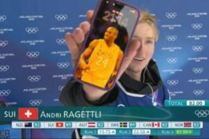 賽后,拉格特利面對著直播鏡頭,曬出了自己的手機封面,也是自己的偶像,已故籃球運動員科比·布萊恩特。