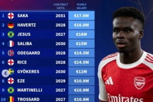 體育資訊2月20日訊 薩卡正式與阿森納完成續約,德轉也盤點了阿森納隊內年薪榜,其中薩卡位居第一,具體如下(合同期限,年薪):