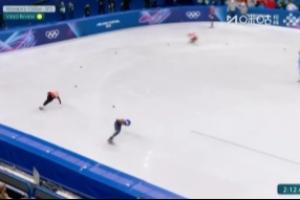 還剩5圈時,荷蘭選手舒爾廷和意大利選手孔福爾托拉碰撞后一起摔倒,場上局勢大亂,中國香港選手林靜欣不久后摔倒,而楊婧茹幾乎鎖定第三。