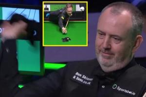 在比賽最后一局,特魯姆普123-0領先時,馬克·為例阿姆斯出人意料地拿起了身邊的毛巾,朝球臺丟去,毛巾精準命中了特魯姆普準備擊打的白球。特魯姆普先是一驚,隨后作勢要隔著毛巾來擊打白球,不過比賽在現(xiàn)場觀眾的笑聲中結束。
